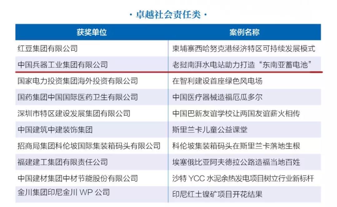 12月3日,由國務院新聞辦公室、國務院國資委、全國工商聯指導,中國外文局主辦,中國報道雜志社承辦的“2019·中國企業海外形象高峰論壇”在北京舉行,由中國報道雜志社和國務院國資委新聞中心聯合開展的“2019中國企業海外形象建設優秀案例征集活動”評選結果揭曉,中國兵器工業集團北方公司老撾南湃水電站項目榮獲2019中國企業海外形象建設十大優秀案例及卓越社會責任獎。