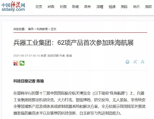 央廣網:兵器工業集團將展出150多項展品 超四成首展|中國航展萬里行2021-09-30