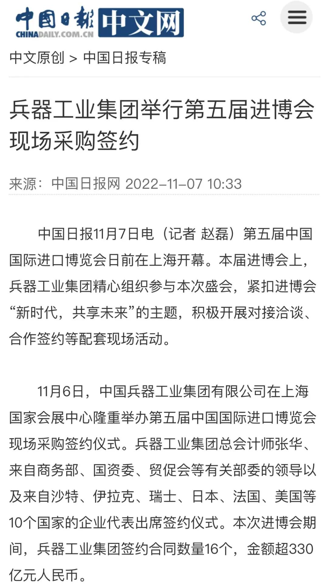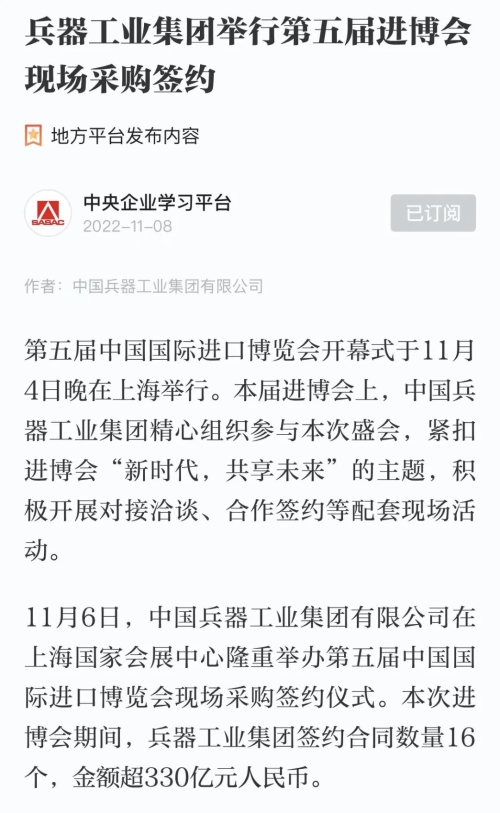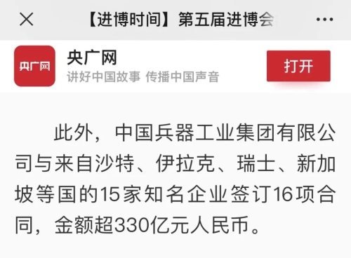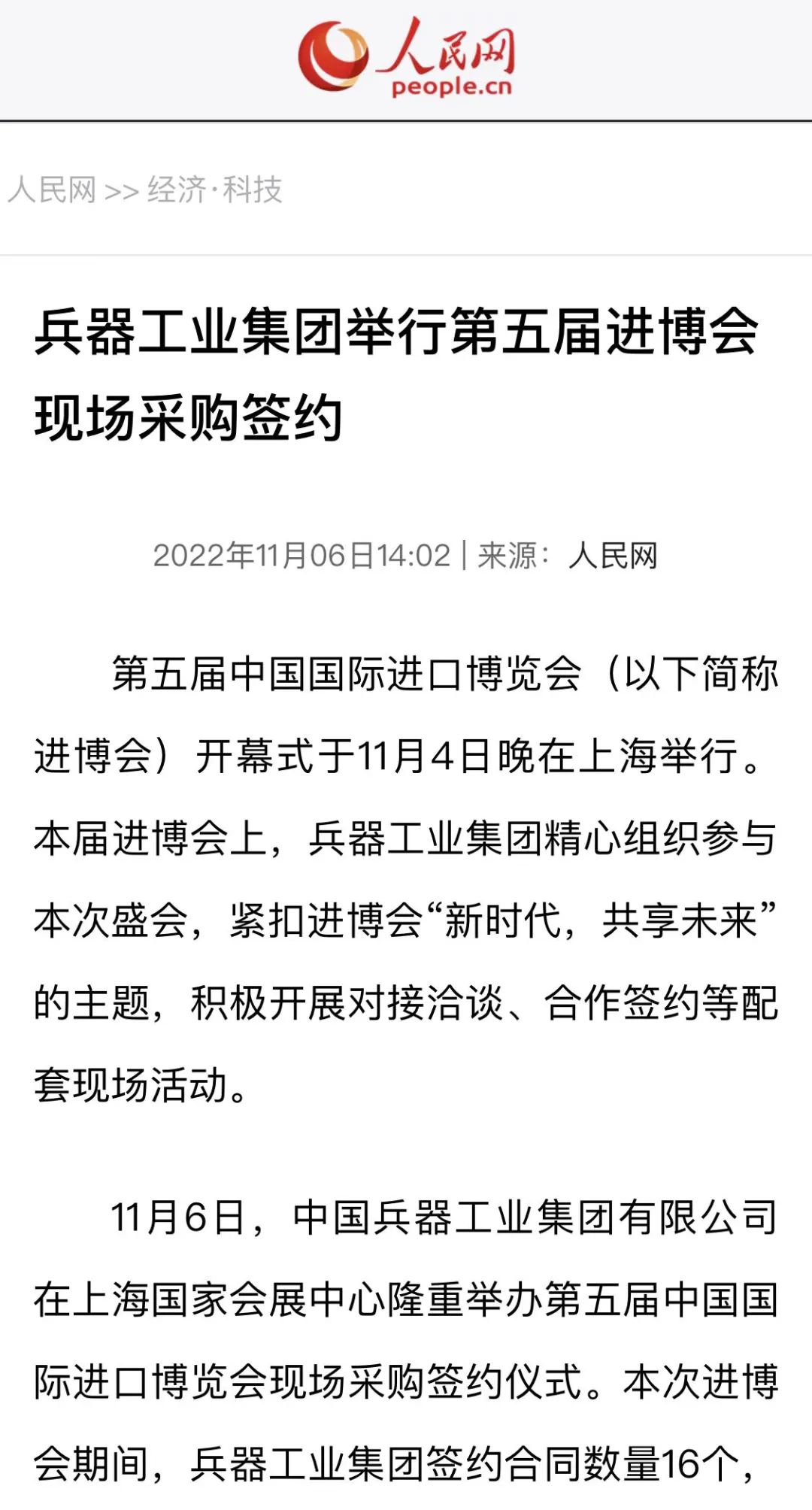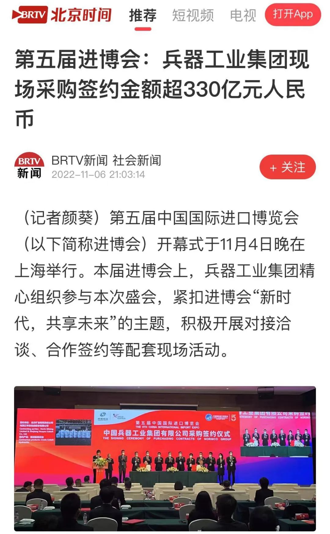 兵器工業集團第五屆進博會成果受到廣泛關注 |