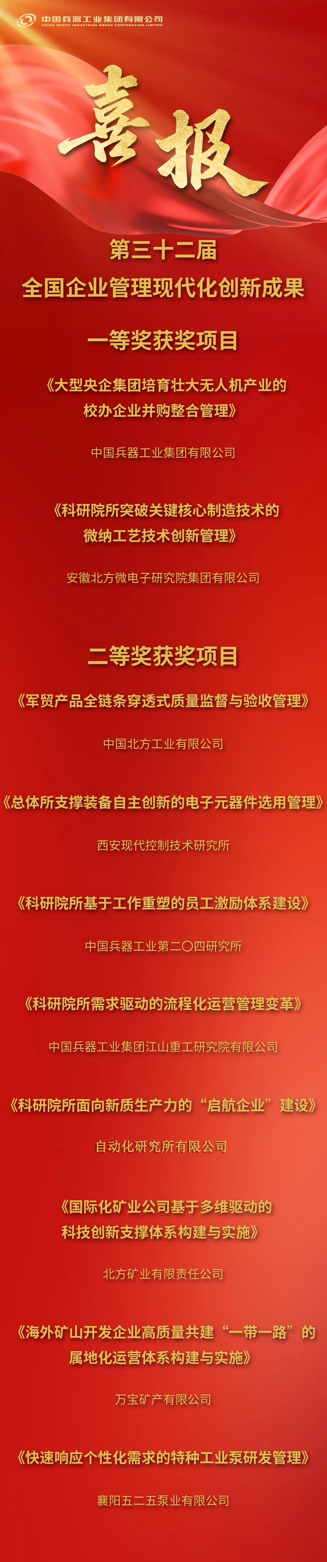 兵器工業集團2025年度管理創新成果獲獎名單發布2025-11-20